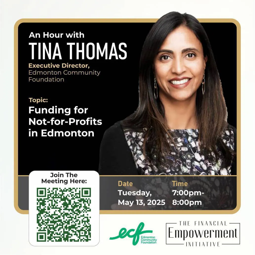 At 7pm tonight!!!! You don’t want to miss this 🔥‼️‼️‼️🔥 Join us for An Hour with Tina Thomas, Executive Director of Edmonton Community Foundation! We’ll explore Funding for Not-for-Profits...